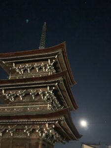左の画像は2/3の国分寺節分祭の駐車場係を手伝った時に月がきれいだったので三重塔と一緒に撮ったものです。
